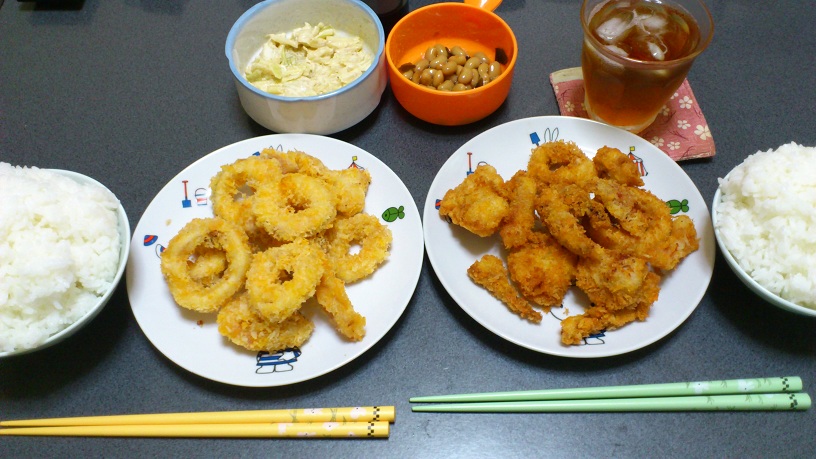 ・スルメイカのフライ(右側が2回目なので色が・・・
