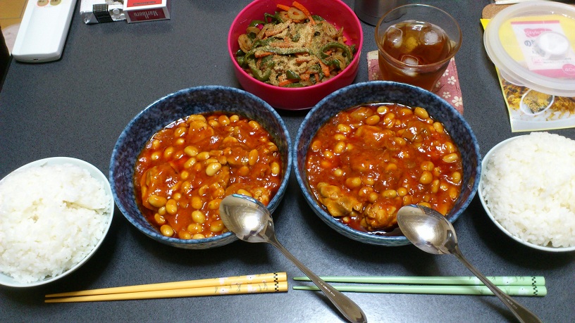 ・鶏肉のトマト煮込み大豆も一緒に