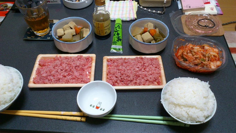 日曜日は外食ではなく、お家で出来合いの物(ネギトロ)でした^^