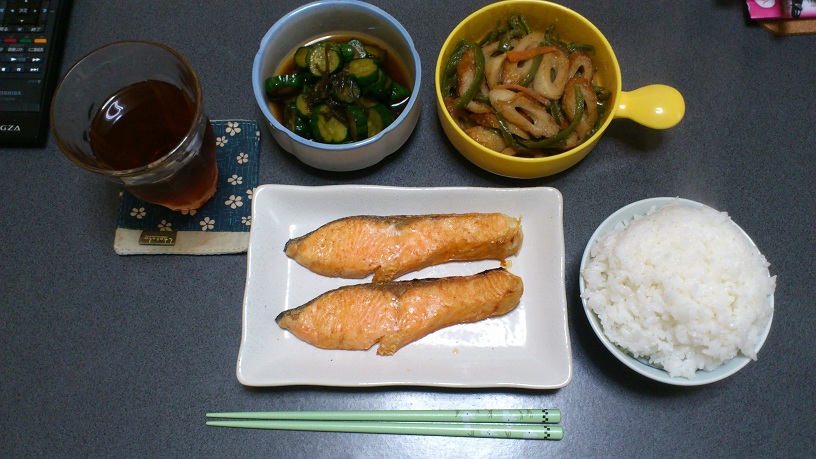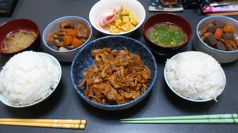 おかずが3品の日もあれば、超手抜きの日もあったり・・・